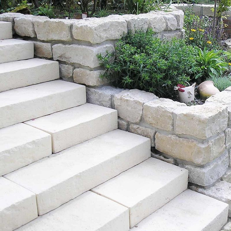 20 x 45 cm Kalkstein-Blockstufen Blancka Flava weiß