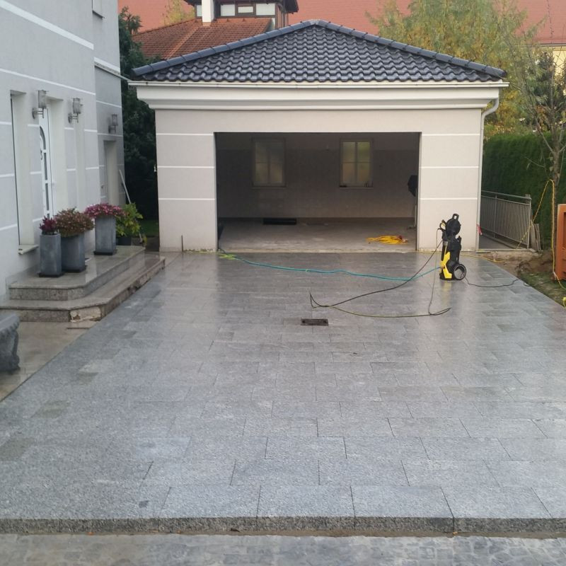 8 cm starke Granit-Pflasterplatten Griys hellgrau